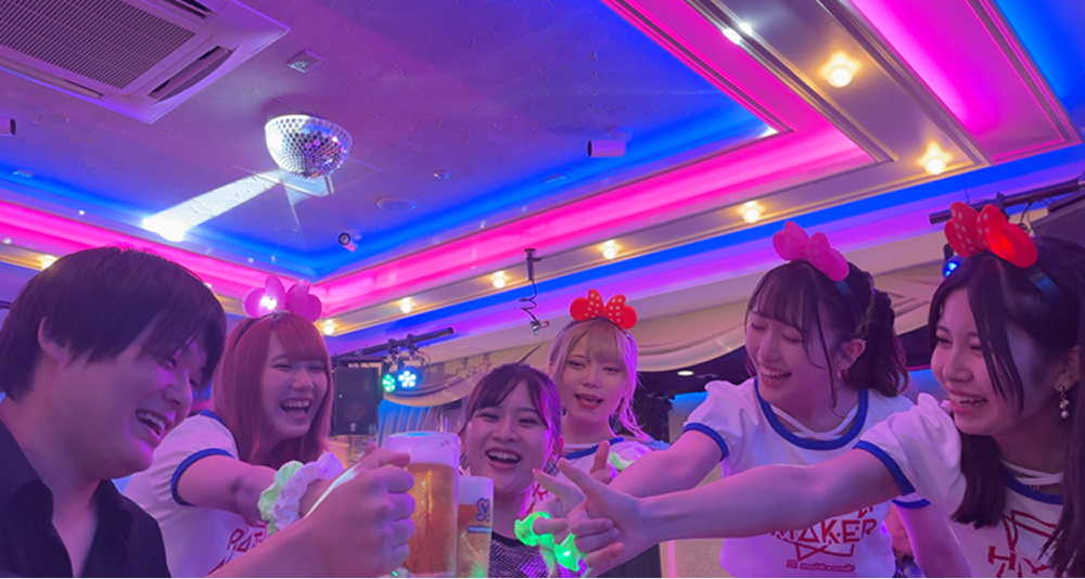 HYPERのショータイムは会場一体型! シーズンごとに変わる、ショータイム曲! 誰でも真似して楽しめるシンプル振り付けは、めいどりーみんHYPERオリジナル♪