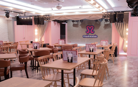 | 設備·サービス | 喫煙不可 携帯充電できます フリーWIFIスポット VISA、MASTER、PAYPAY、JCB、AMEX、ダイナース、、au Pay、楽天ペイ、銀聯カード利用できます 箱貸し、コラボイベント可能 車いす、ベビーカー用スロープ完備 【機材/ライブ環境について】 ▽ステージサイズ:横幅5,000mm×奥行3,000mm×高さ250mm ▽照明機器:ステージ照明・ムービング・ミラーボール完備 ▽音響:メインスピーカー×2・サブウーファー×2・モニタースピーカー×2 ▽マイク:有線マイク×2本(スタンド) めいどりーみん最大60席! エントランスを抜け、白い扉を開けるとそこは夢の国 カウンター席もあるので、1名様から団体様まで幅広く楽しめます。 めいどりーみん最大のステージは圧巻! |
